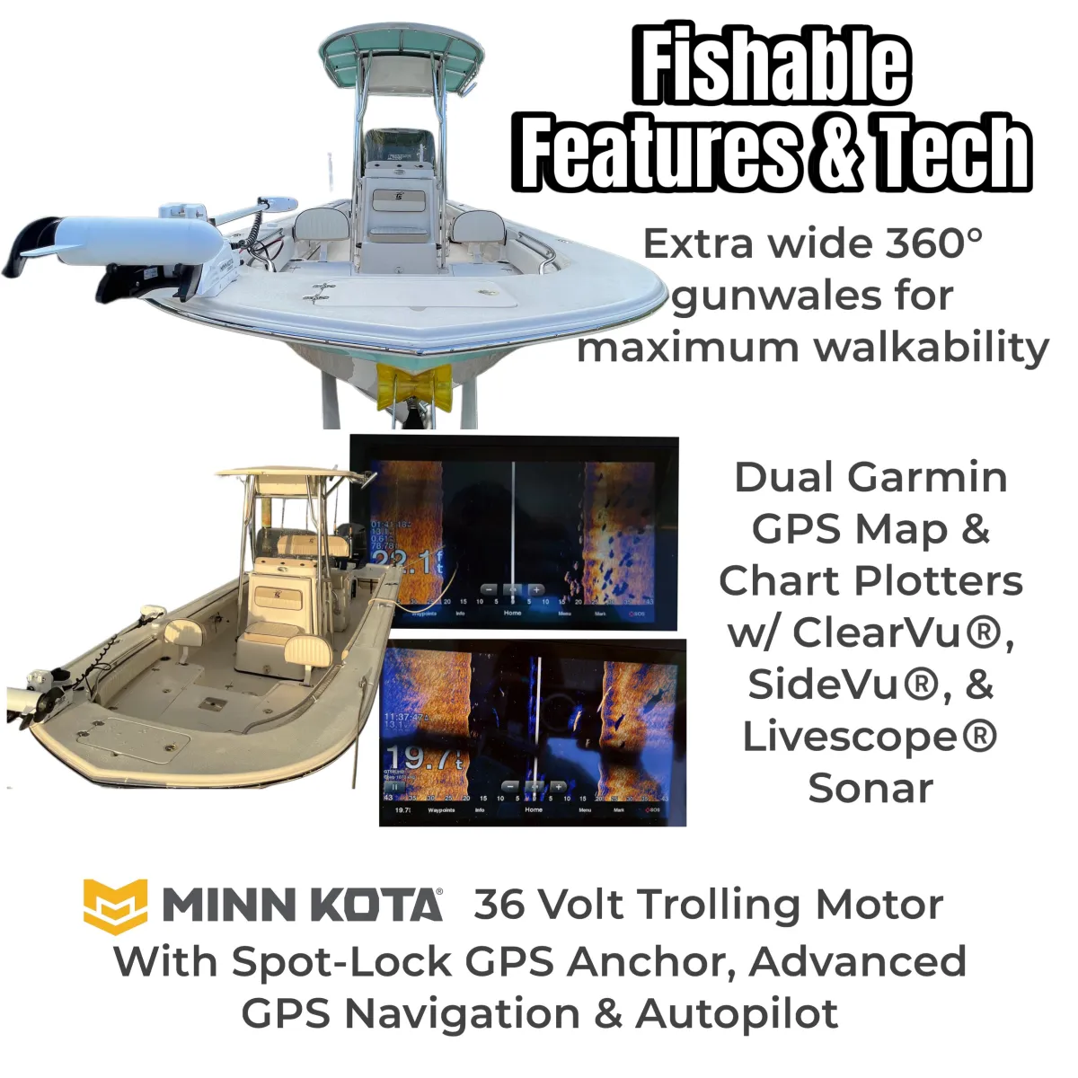 - Dual Garmin Electronics with SideVu, ClearVu, & LiveScope sonar imaging
